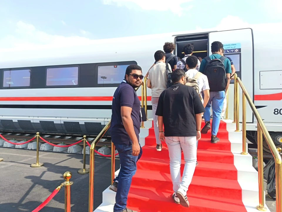 During the visit, the students toured the high-speed train from the inside and learned about the clean-energy technologies used in its design. They also visited the newly opened Railway Industry Museum, inaugurated recently in the presence of the Prime Minister and the Minister of Communications, where they explored the history and evolution of train manufacturing in an engaging and interactive way.