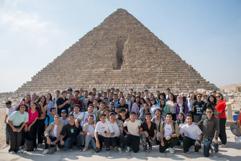 The visit was a day full of adventure and learning, where students had the opportunity to explore the greatness of ancient Egyptian civilization up close. They learned about the mysteries of pyramid construction and the rich history surrounding this awe-inspiring site, in an experience that blended education with fun.