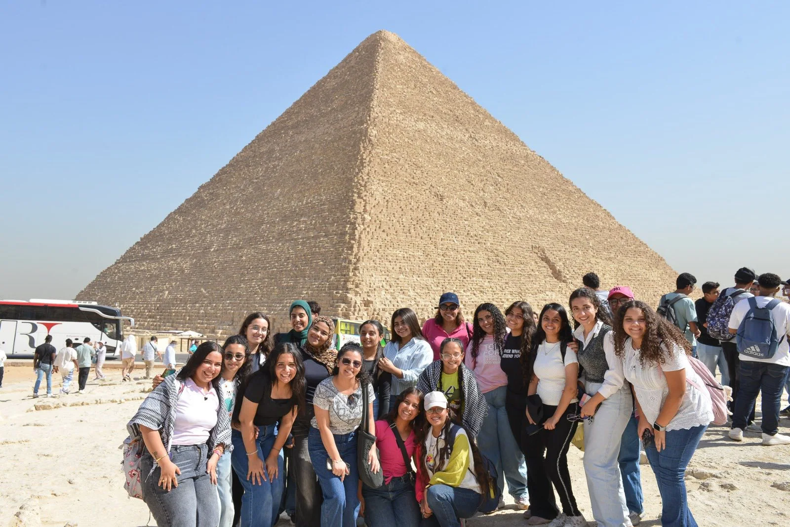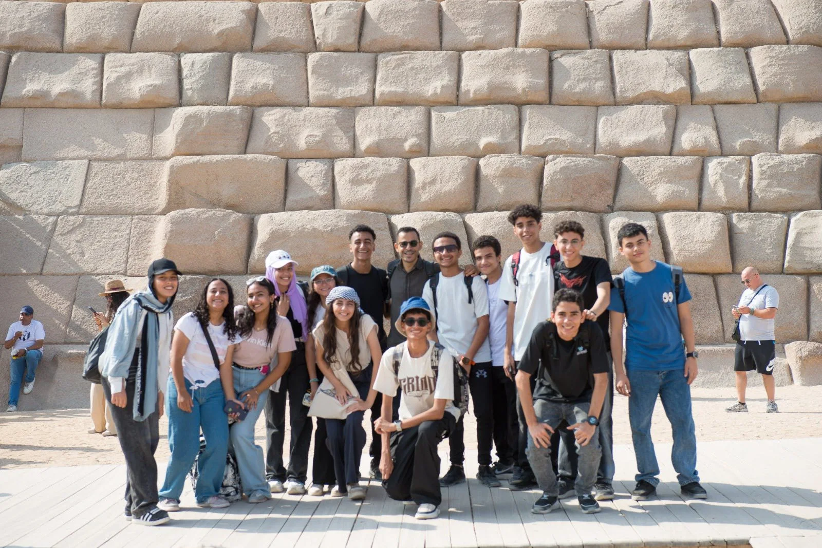 The visit was a day full of adventure and learning, where students had the opportunity to explore the greatness of ancient Egyptian civilization up close. They learned about the mysteries of pyramid construction and the rich history surrounding this awe-inspiring site, in an experience that blended education with fun.
